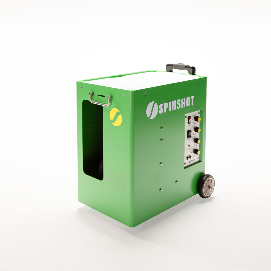 The new Spinshot Pro2 tennis ball machine is the perfect cost effective ball machine with adjustable ball speed, feed rate, spin, height, horizontal & random oscillation.
