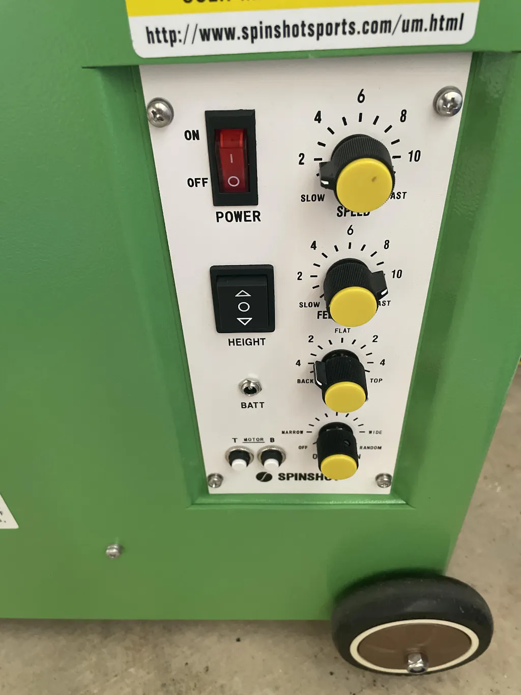 Ball trajectory is electronically adjustable using the height toggle switch.