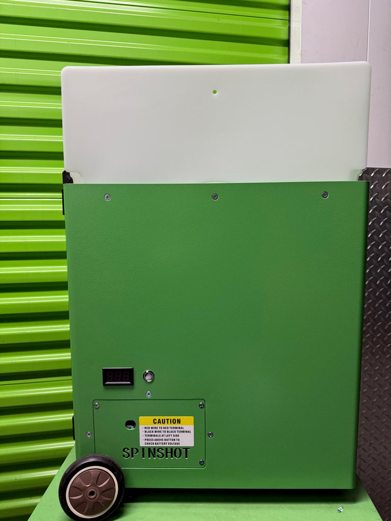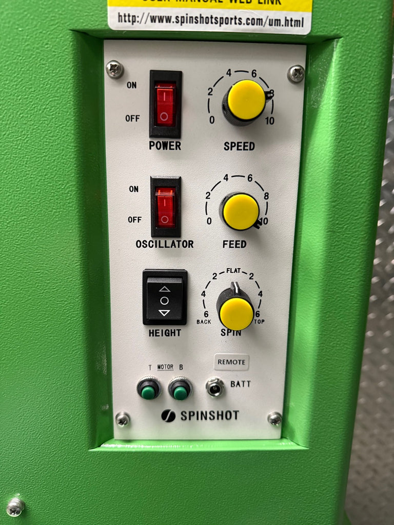 Spinshot warrants that each new tennis ball machine purchased will be free from defects in materials and workmanship for two years from the date of purchase for personal use. For commercial or club use, the warranty is limited to one year. Purchase of the warranty extension is restricted solely to new machine orders.