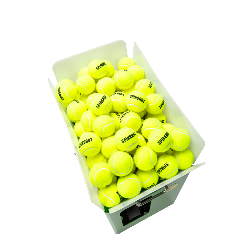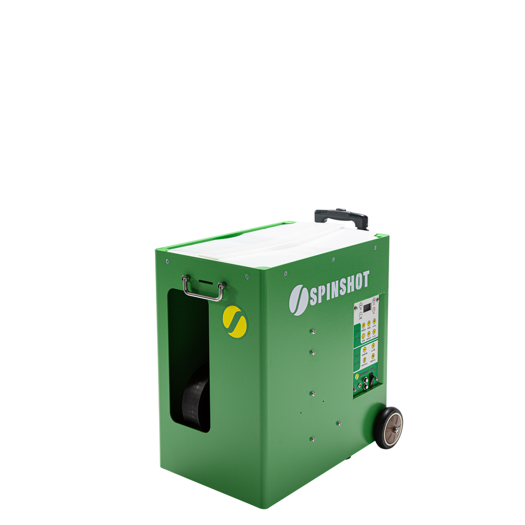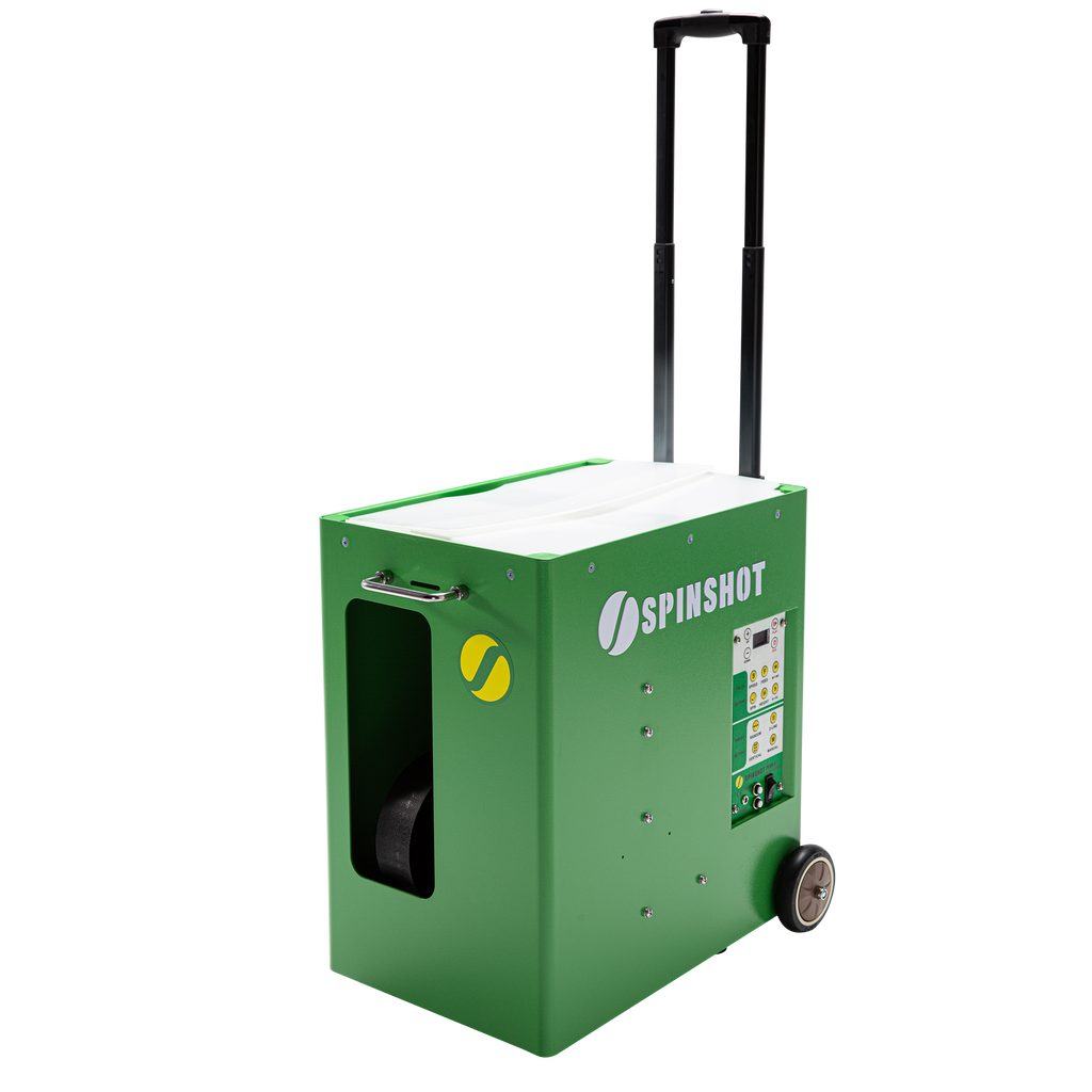 The Spinshot Plus-2 HS (high spin / high speed) tennis balls machines feature more powerful motors which allow for higher balls speeds even when top spin or back spin are used. The Spinshot Plus-2 HS top speed is around 80 mph and can be slowed don to 18 mph.
